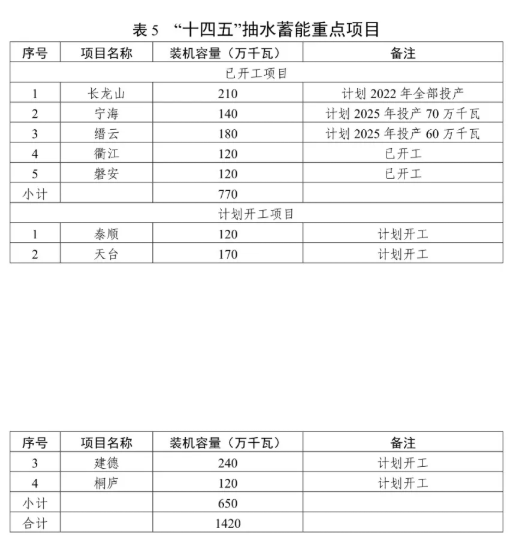 有序發(fā)展抽水蓄能電站。積極推進(jìn)長龍山、寧海、縉云、衢江、磐安等抽水蓄能開工項(xiàng)目的建設(shè),穩(wěn)妥開展泰順、天臺等抽水蓄能電站項(xiàng)目前期工作,適時(shí)啟動(dòng)建德、桐廬站點(diǎn)的前期工作。結(jié)合現(xiàn)有站點(diǎn),合理規(guī)劃布局,積極推動(dòng)新一輪抽水蓄能電站選點(diǎn)工作。加強(qiáng)抽水蓄能電站建設(shè)管理體制、電價(jià)機(jī)制等研究。"十四五"期間,全省抽水蓄能電站力爭新增裝機(jī)容量 340 萬千瓦,累計(jì)裝機(jī)容量達(dá)到798 萬千瓦。