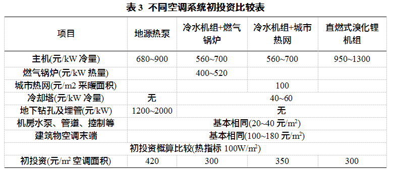 3)不同空調(diào)系統(tǒng)初投資費(fèi)用對比