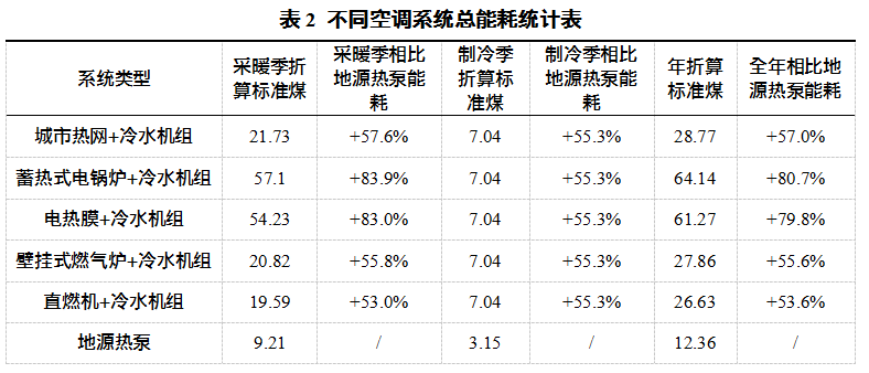 不同空調(diào)系統(tǒng)總能耗統(tǒng)計(jì)比較如表2所示。