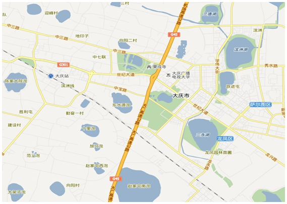 大慶市位于黑龍江省西部,松遼盆地中央凹陷區(qū)北部。市區(qū)地理位置北緯45°46'至46°55',東經(jīng)124°19'至125°12'之間,東與綏化地區(qū)相連,南和吉林省隔江相望,西部及北部與齊齊哈爾市接壤。是中國最大的陸上油田和重要的石油化工基地。