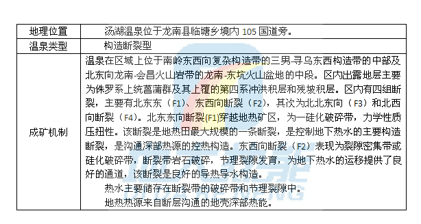 江西省龍南縣湯湖溫泉成礦機制![]() ![]() 江西省龍南縣湯湖溫泉區(qū)域地質圖 |